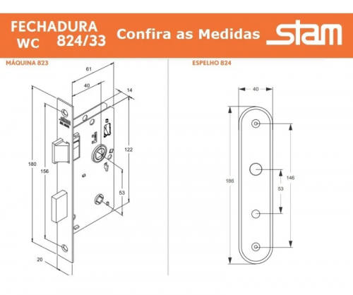 Fechaduras - Stam - Fechadura Stam Preta Porta De Banheiro 824/33 Maçaneta Alavanca